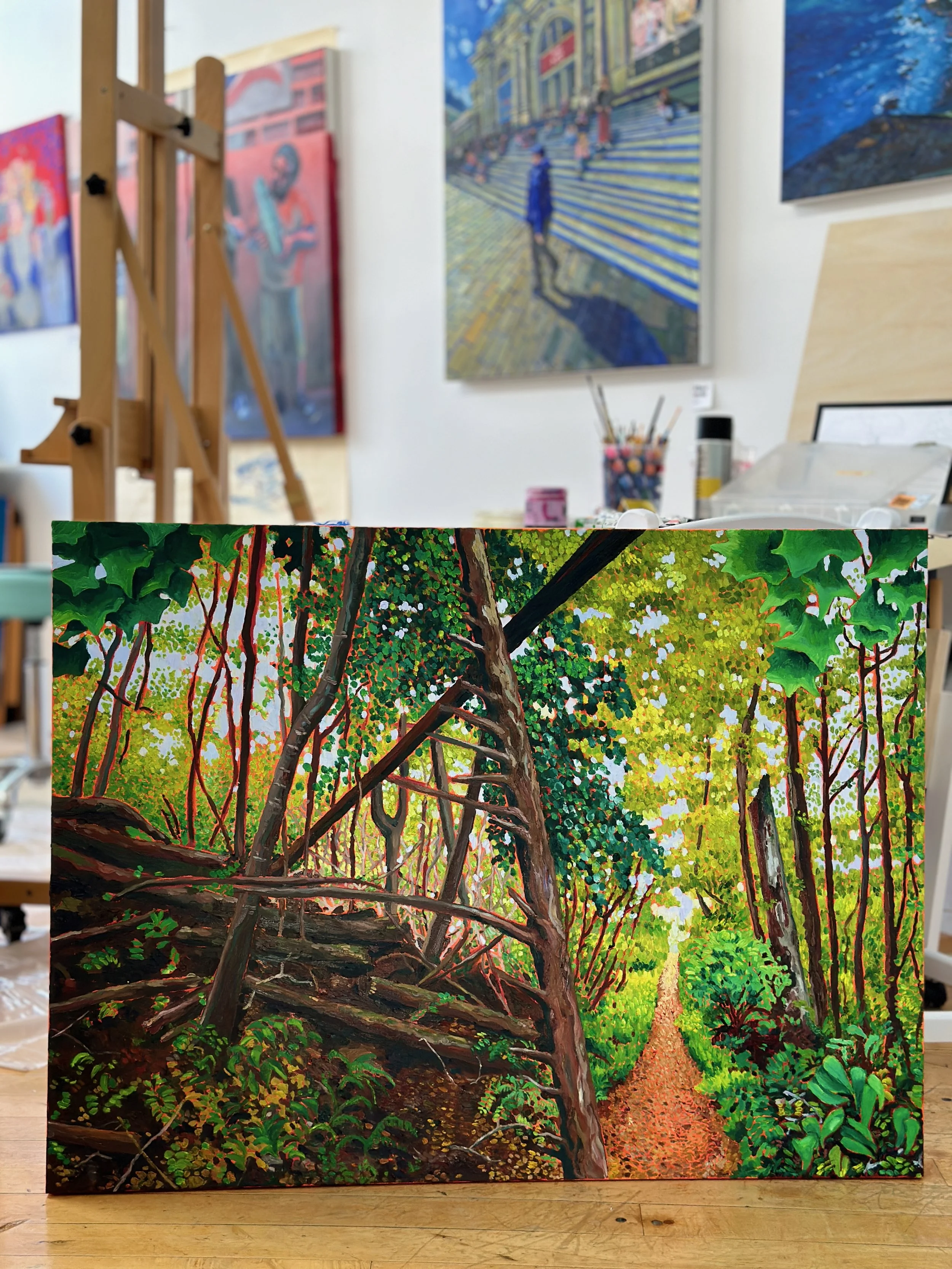 In this post I take a look back at one of my most ambitious paintings from 2024, a sunburnt hiking trail inspired by a trip to Bear Mountain, NY. At 40 x 30 inches, this was one of the larger landscapes I did during my time in the Hoboken studio.